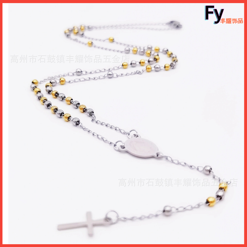 クロスボーダー热い贩売3mmスチールゴールドブラック三色仏ビーズネックレス锁ステンレス钢ラウンドビーズネックレスクロスネックレス