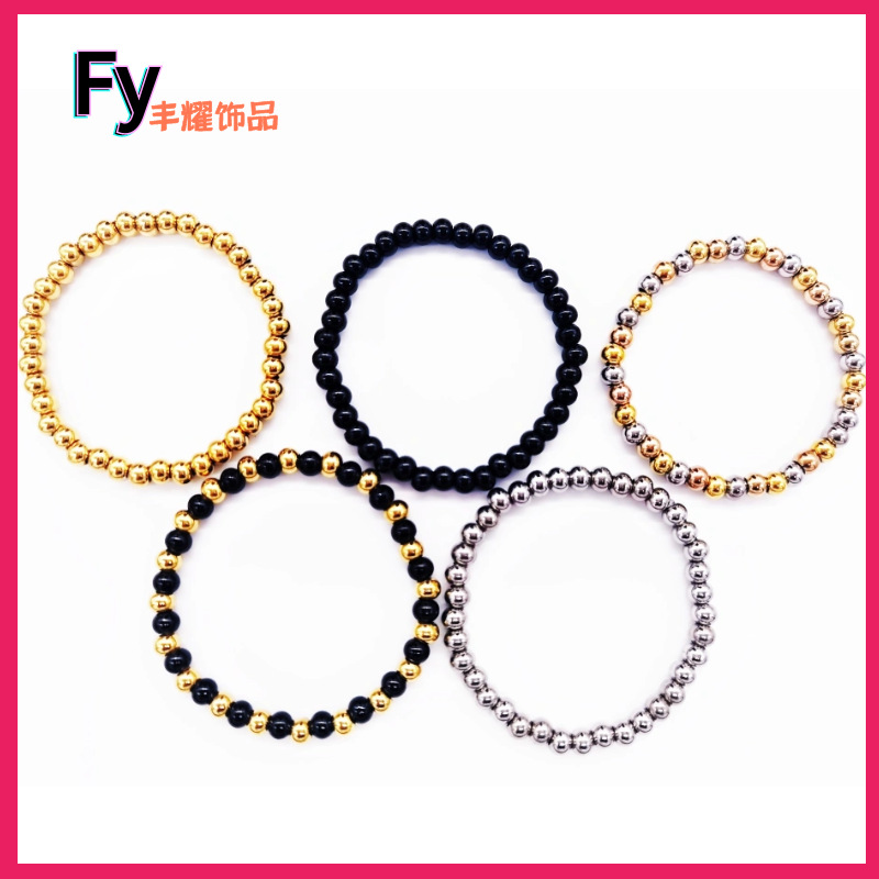 クロスボーダー热い贩売4mmゴールドビーズ手ロープステンレスストレート穴ビーズdiyロープブレスレットストレッチブレスレット