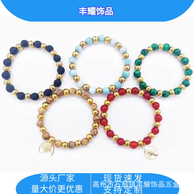 クロスボーダー热い贩売ステンレス钢ビーズブレスレットガラス石ボールブレスレットdiy弾性ロープブレスレットストレッチブレスレット