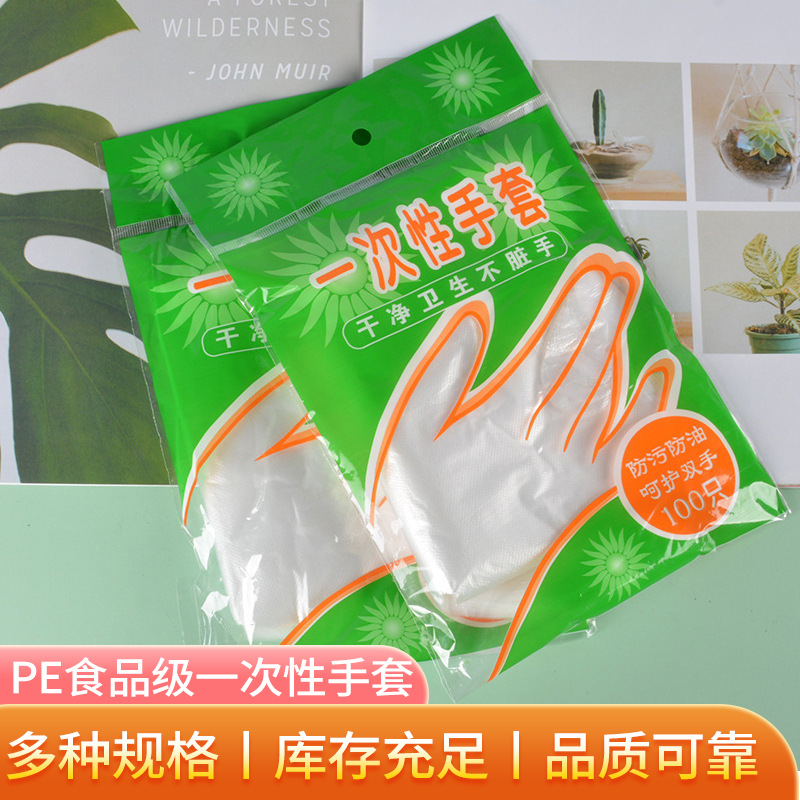 メーカー卸売り使い捨て手袋100匹入り食品級衛生飲食PE透明美容キッチン手袋