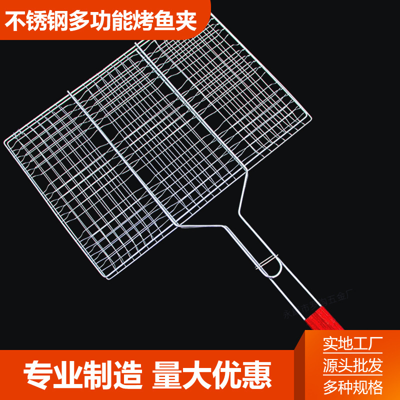メーカー大容量焼き魚クリップ野菜焼き網片焼きグリル木柄ステンレス焼き網クリップ卸売り