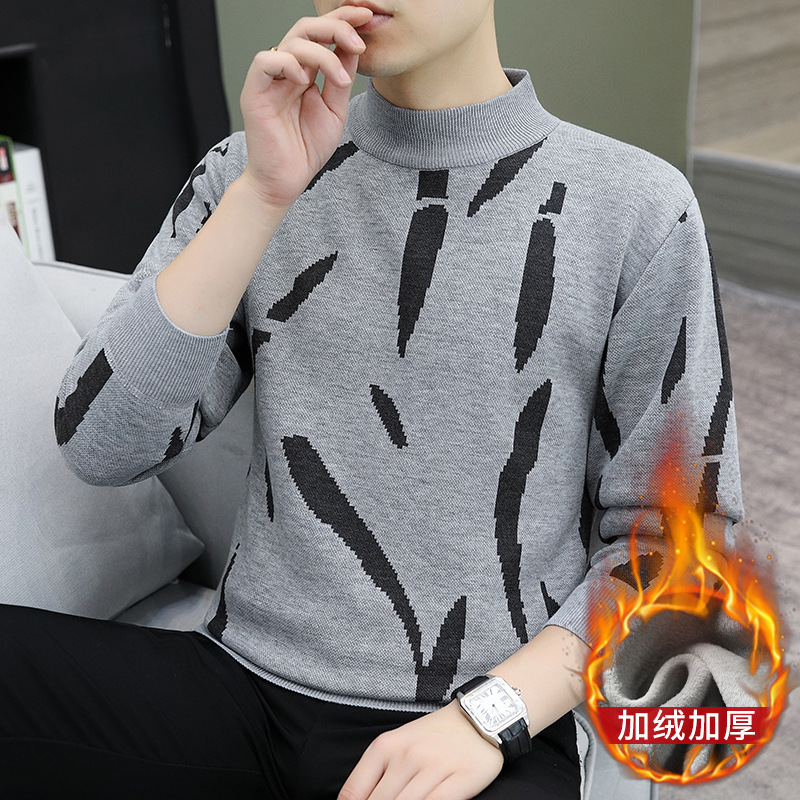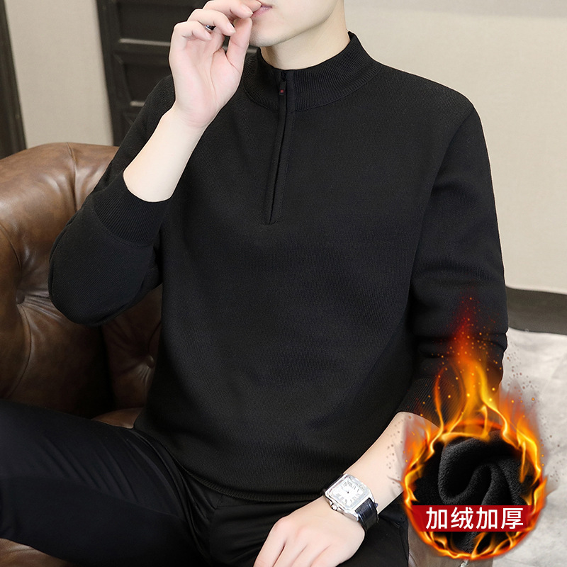 半高襟セーター男とベルベットが一体のベルベットを厚くした秋冬の保温毛糸ニットのシャツ