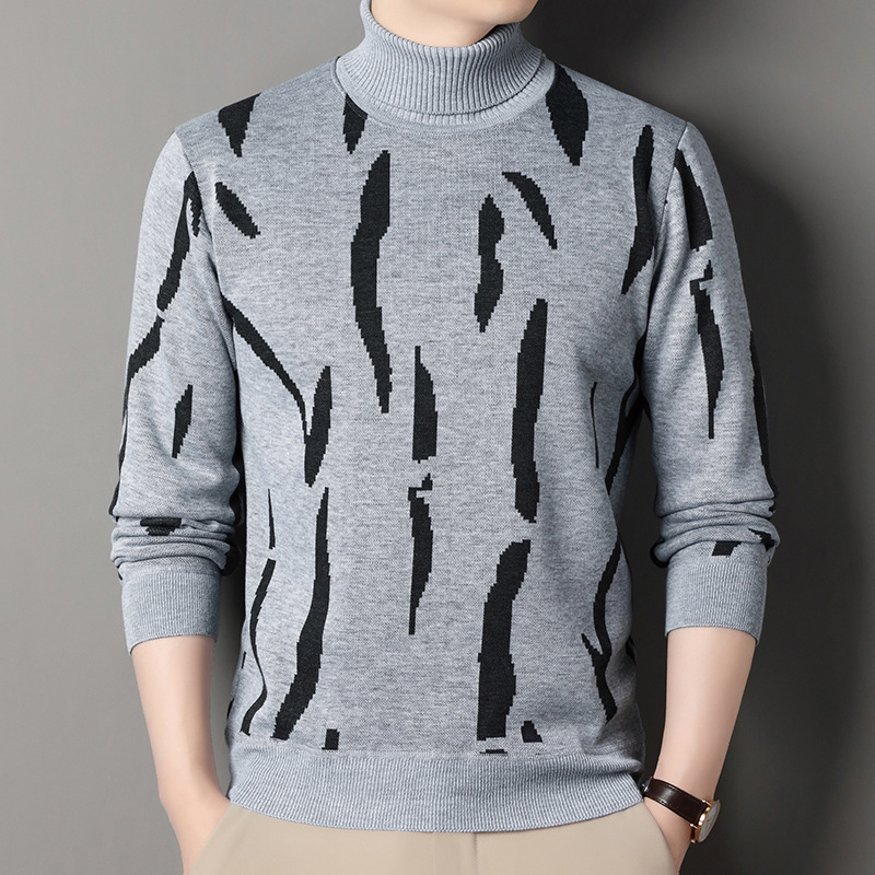 高襟のセーターの男性のベルベットは一体のベルベットの秋冬の保温毛糸のニット-ベルベットのシャツを厚くします