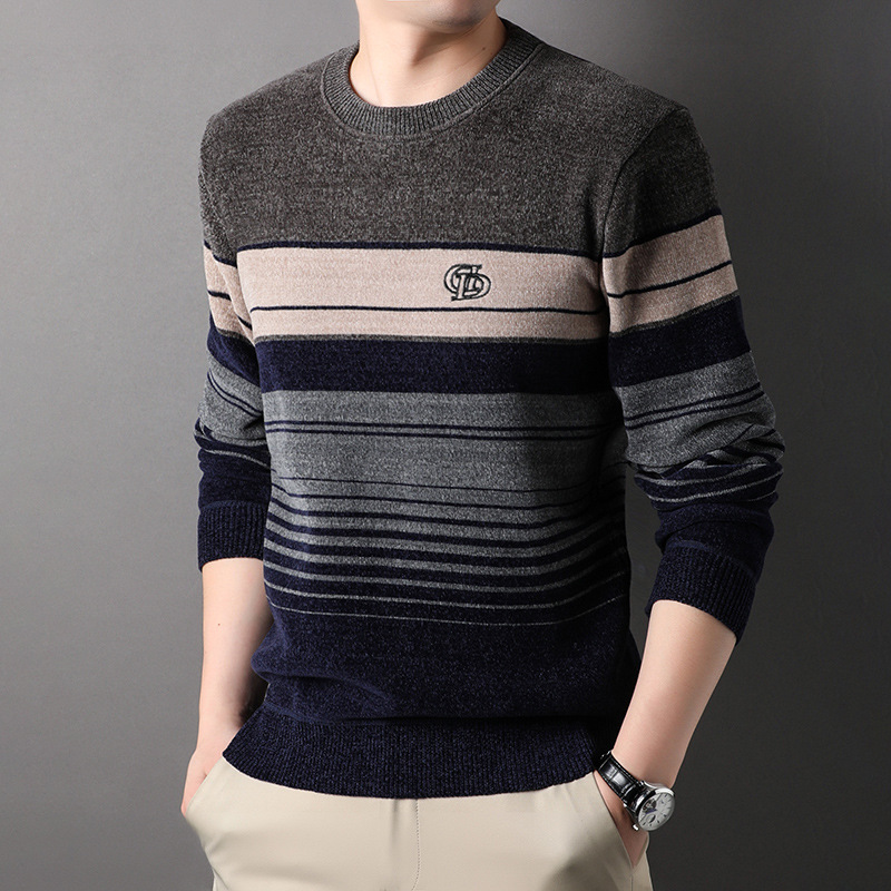 丸首のセーターの男性はベルベットを厚くして、秋冬のビジネス保温毛糸ニット-シャツ