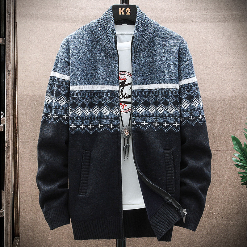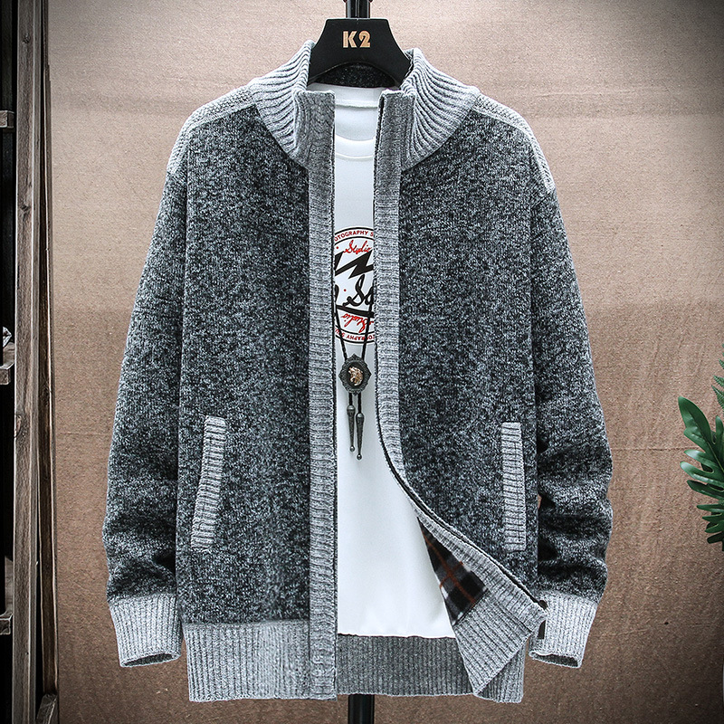 カーディガンのセーターの男性の新型秋冬の厚い保温の立襟のニットの男性服-
