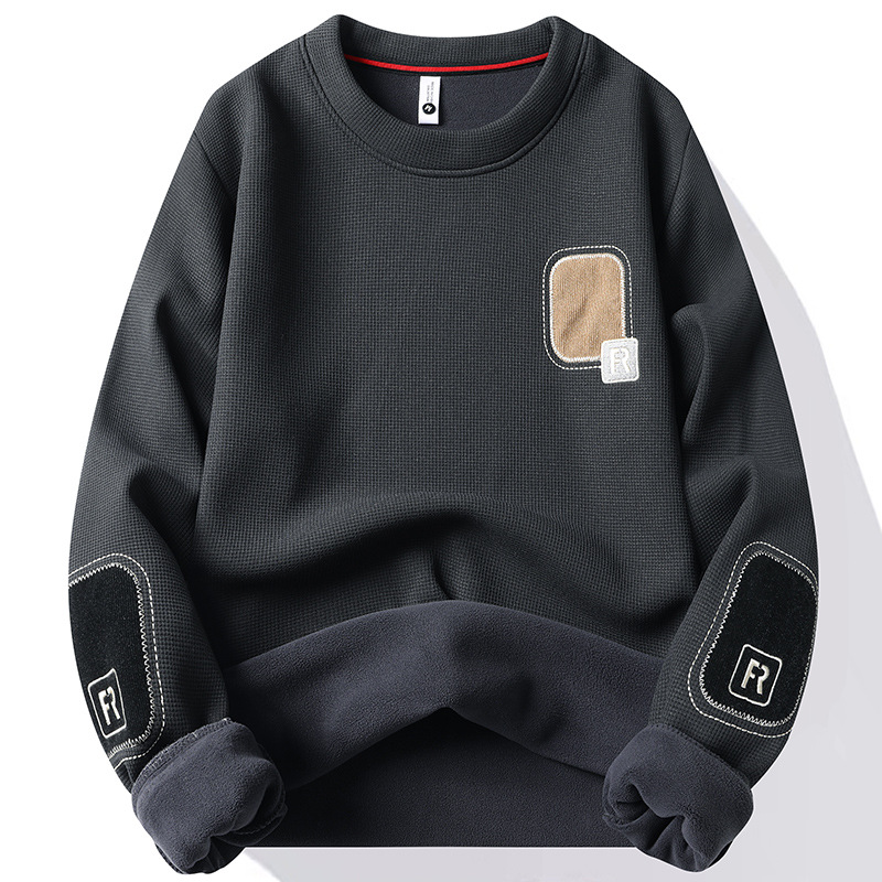 メーカー代発トレンド2024新ニットシャツ秋冬ベルベット厚手丸首刺繍ガーディアン男