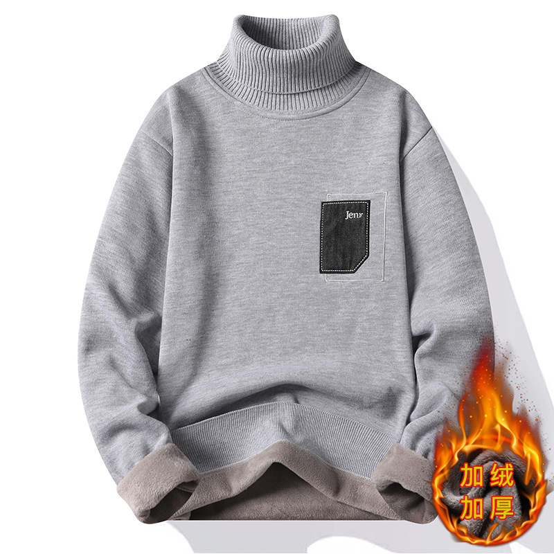 メーカー直販卸売り秋冬ニット秋冬ベルベット厚手半高襟セーター男性セータートレンド