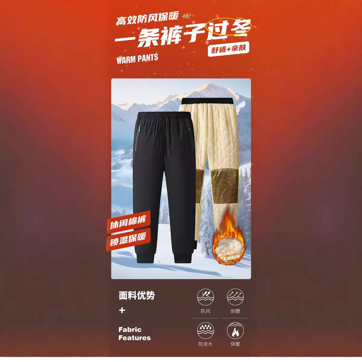 冬保温黒科技グラフェン膝保護発熱羊小毛綿ズボン防水防寒防風加厚ズボン