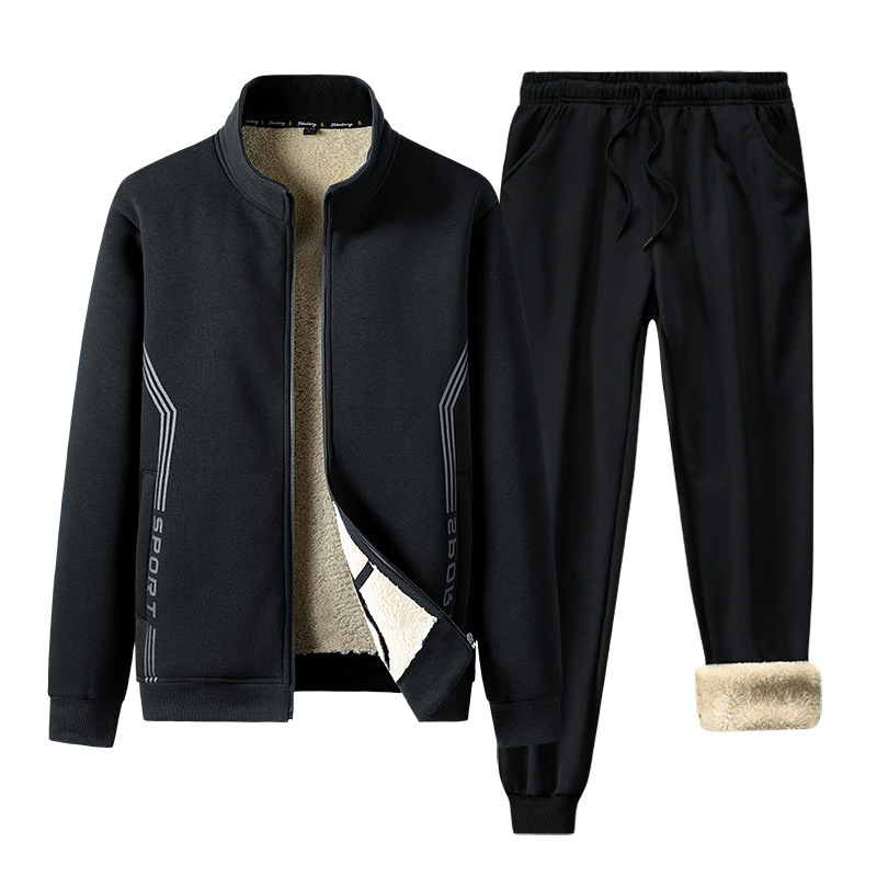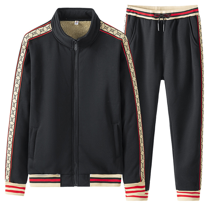 カジュアルスポーツスーツの男性冬のベルベットの厚いカーディガンの新しい立襟のガーディアンの韓国版のトレンドのゆるい2つのセット