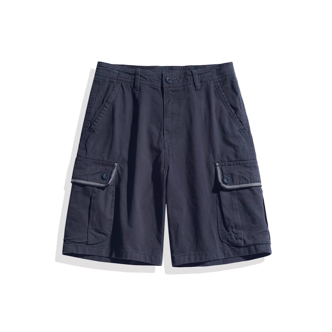 越境夏機能アメリカレトロ工装半ズボン男性ゆったり多袋純色百合休五分ズボンカジュアルズボン