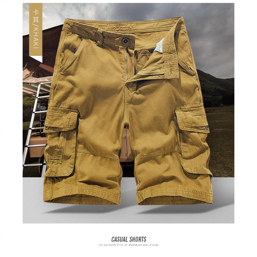 クロスボーダースポーツショーツメンズクォーターパンツワークウェアマルチポケットルーズ大きいサイズカジュアルミッドパンツ綿耐摩耗性トレンディブランド