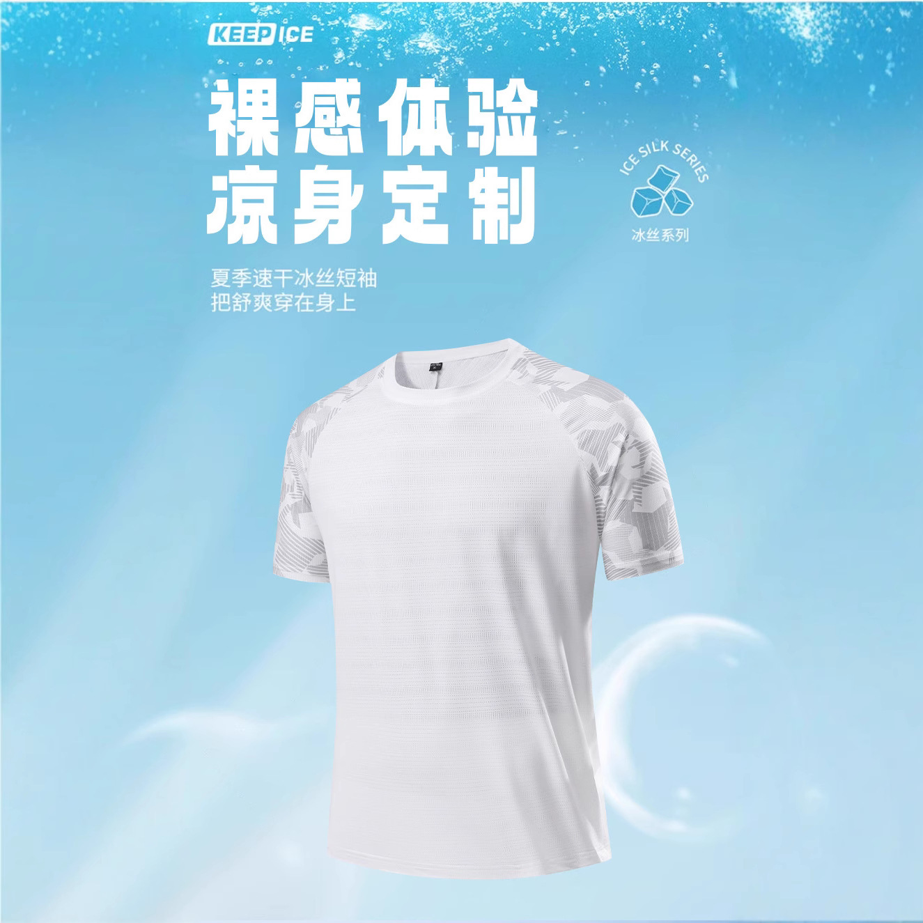 夏の超薄速乾半袖tシャツ男性モデル2025新型氷糸高弾力迷彩丸襟シャツ上着