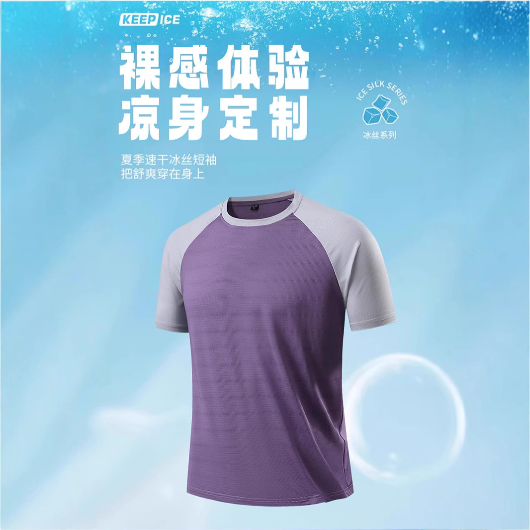 クロスボーダー卸売クロスボーダー卸売アイスシルク速乾性半袖Tシャツメンズ夏薄手ルーズTシャツ2024新しいスタイル透明