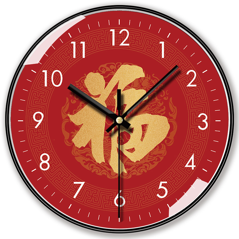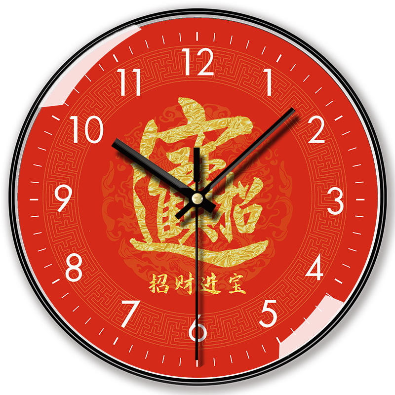 【12インチ30センチ】中国風福字財神招財掛け時計静音大気定時客間時計