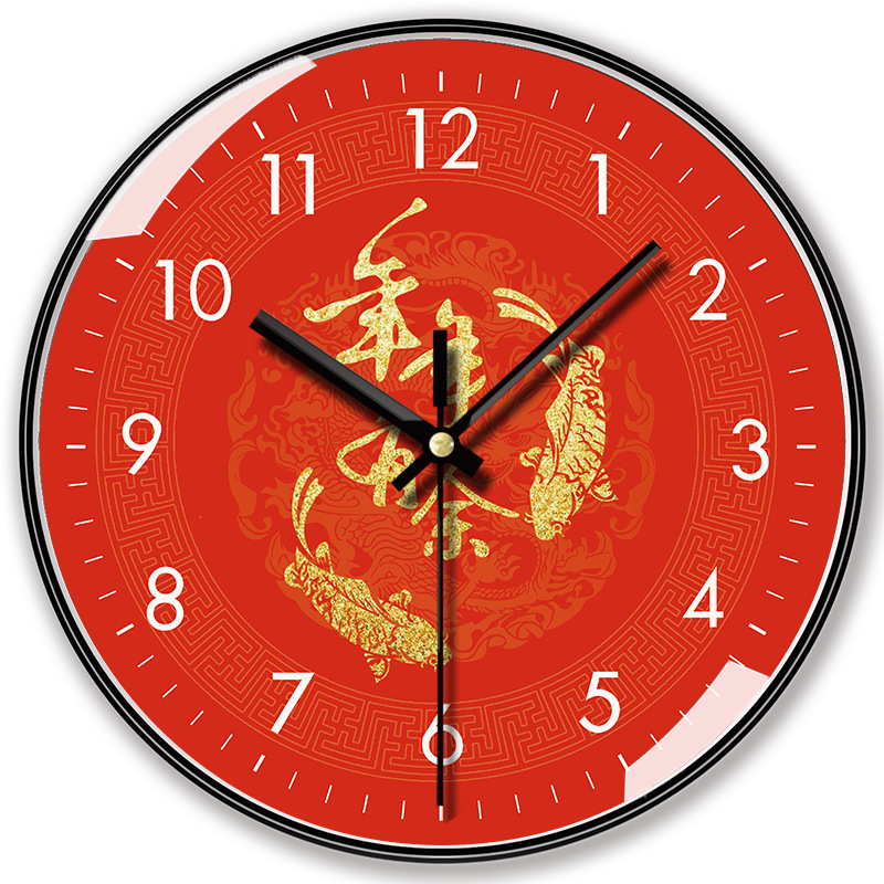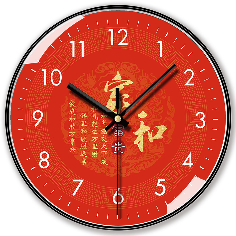【10インチ25センチ】中国風福字財神招財掛け時計静音大気定時客間時計