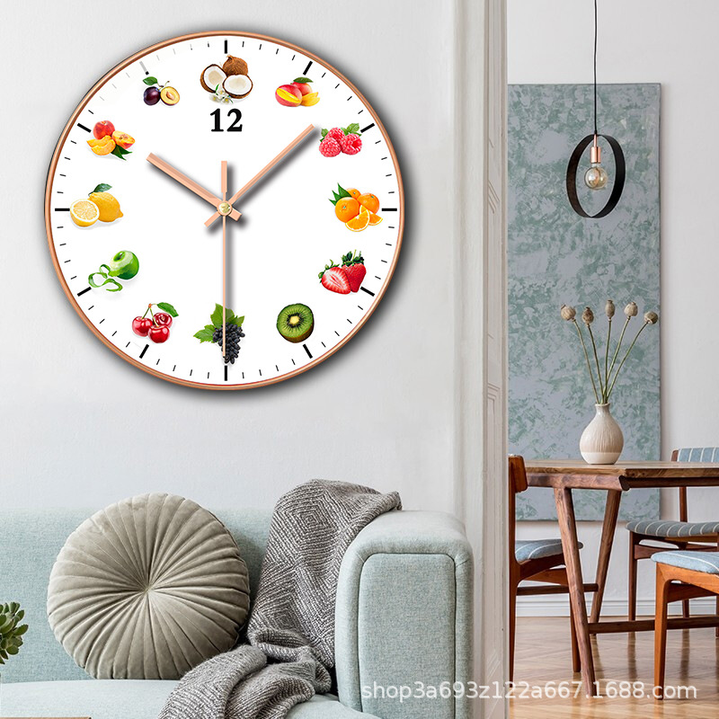 【8インチ20センチ】家庭用モダン静音ダイニングフルーツ掛け時計クリエイティブおしゃれリビング時計飾り
