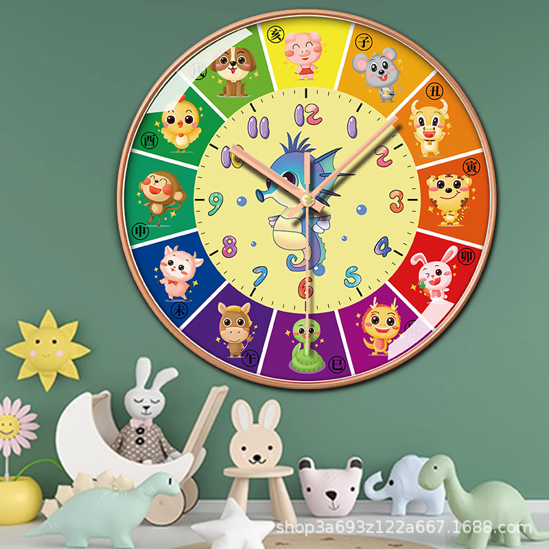 【10インチ25センチ】幼稚園の早教かわいい現代静音無穴時計児童趣味掛け時計