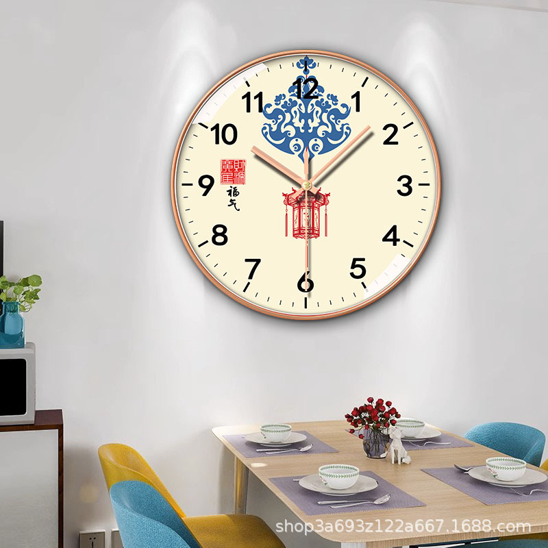 【14インチ35センチ】新中国式シンプルな大気客間装飾石英鐘円形軽贅沢静音壁