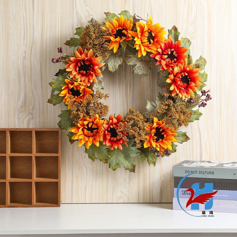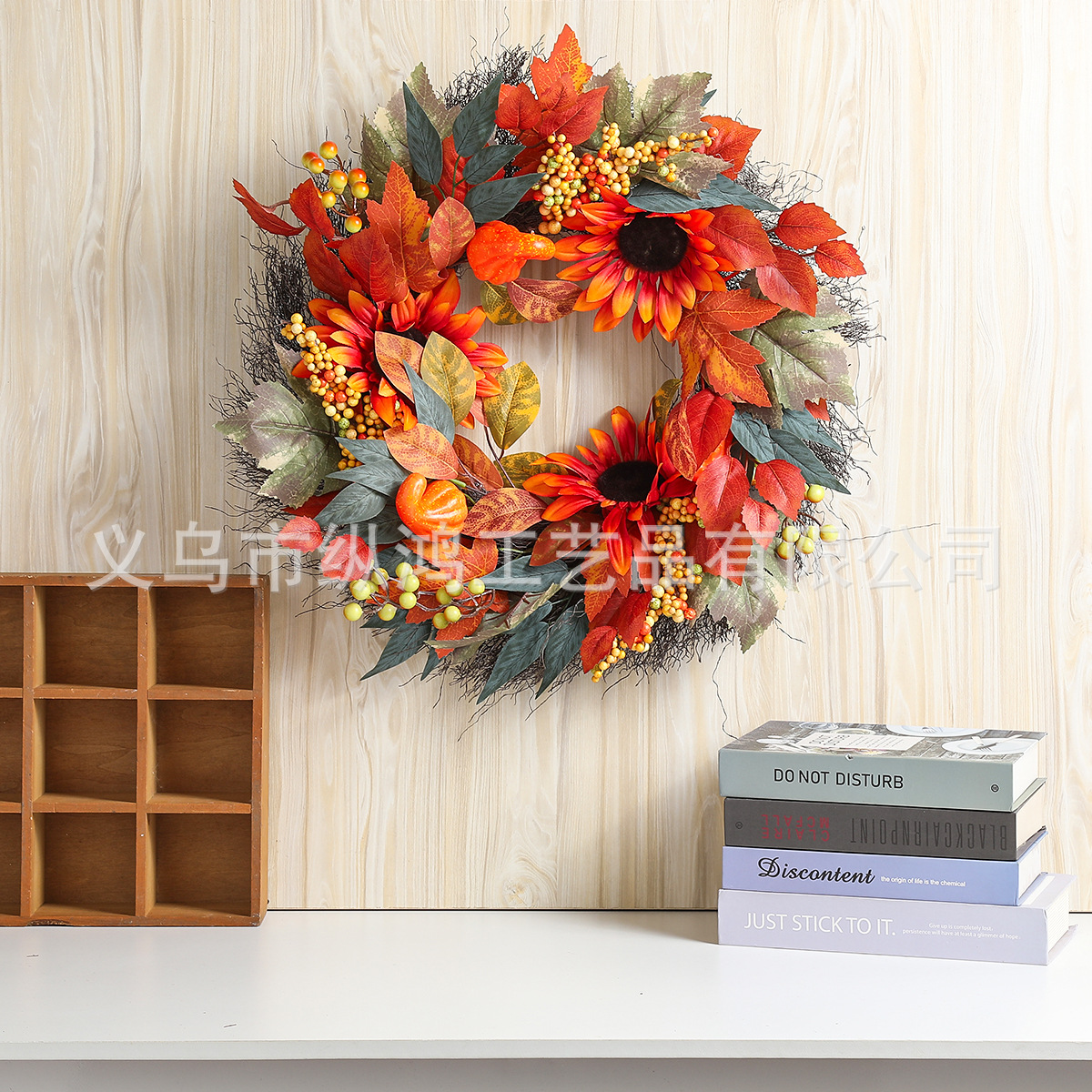 新しいヨーロッパ風ひまわり秋の花輪、アマゾン収穫祭のドア掛け、ホリデーデコレーション