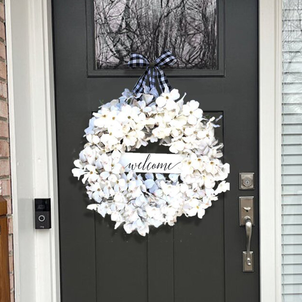 ゾンホン越境新商品 イースターフラワーリング装飾 ドア掛け 白い花 ウィンドウデコレーション ラタンリング