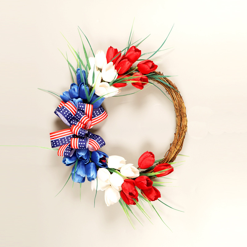 縦鴻クロスボーダー独立日花輪家庭装飾ストラップシミュレーションチューリップ花輪diy編み枯枝藤輪