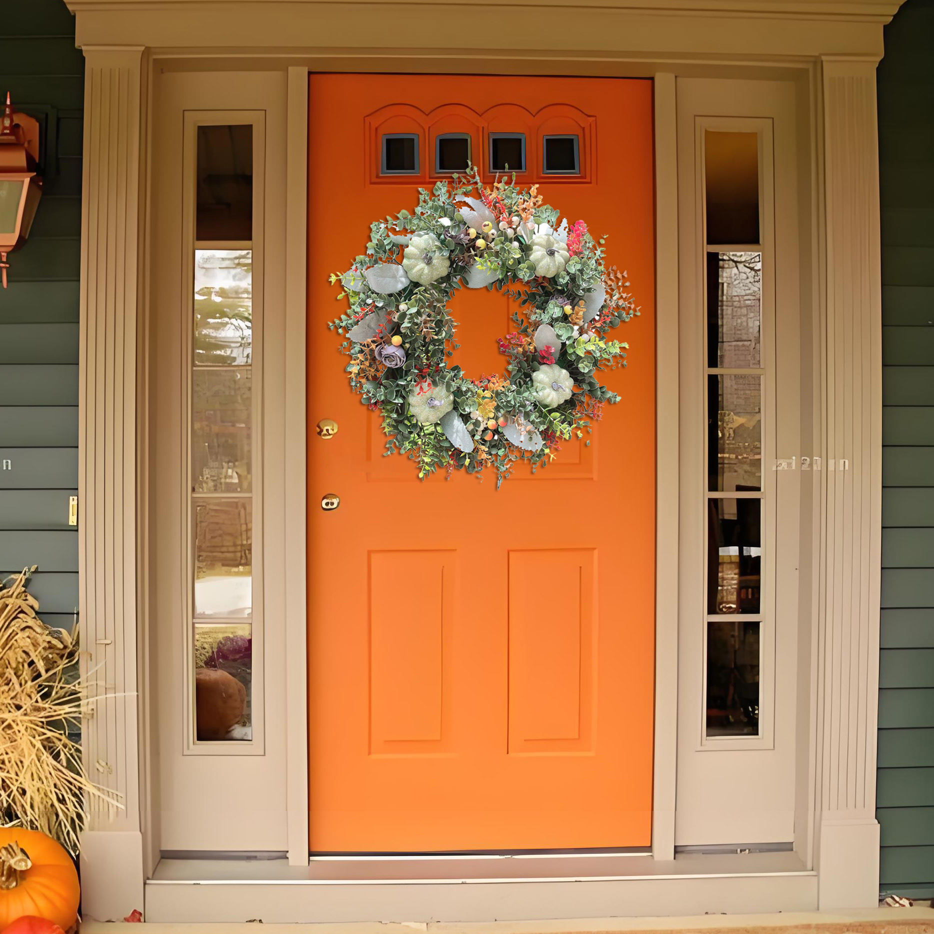 縦鴻クロスボーダーアマゾンカラー尤加利カボチャの金豊収節装飾花輪欧米秋ユーカリ門掛輪