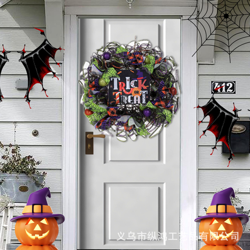 縦鴻ハロウィーン装飾花輪門掛黒蜘蛛網紗花輪ペンダント吊り輪鬼節場配置
