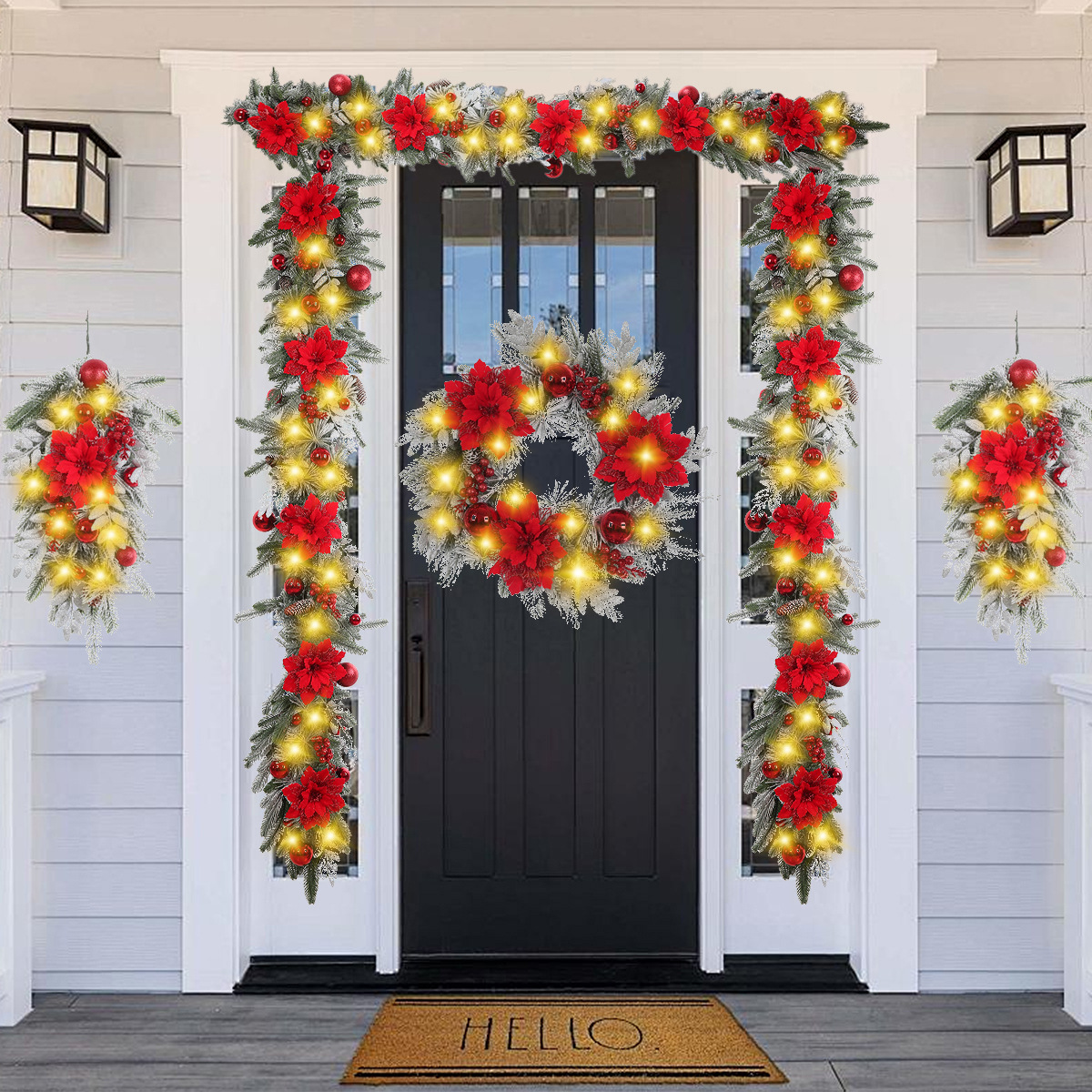 クロスボーダークリスマスデコレーションPVC松葉ミックスホワイトボールレッドフラワー1.8m/2.7mクリスマスリース