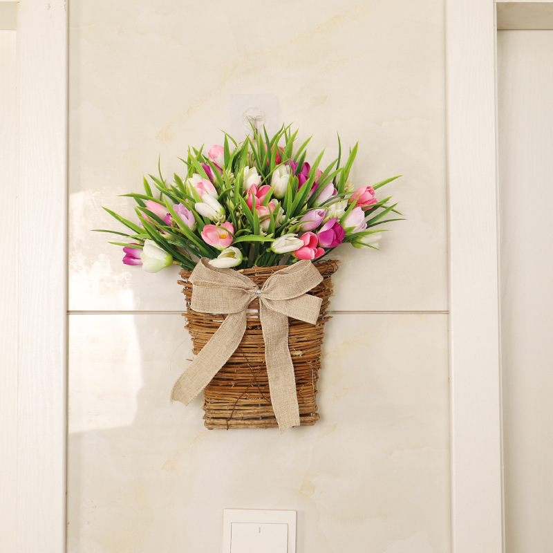 縦鴻クロスボーダー新作シミュレーションチューリップ壁掛け花輪ホーム装飾造花編み花かご壁飾り門掛け