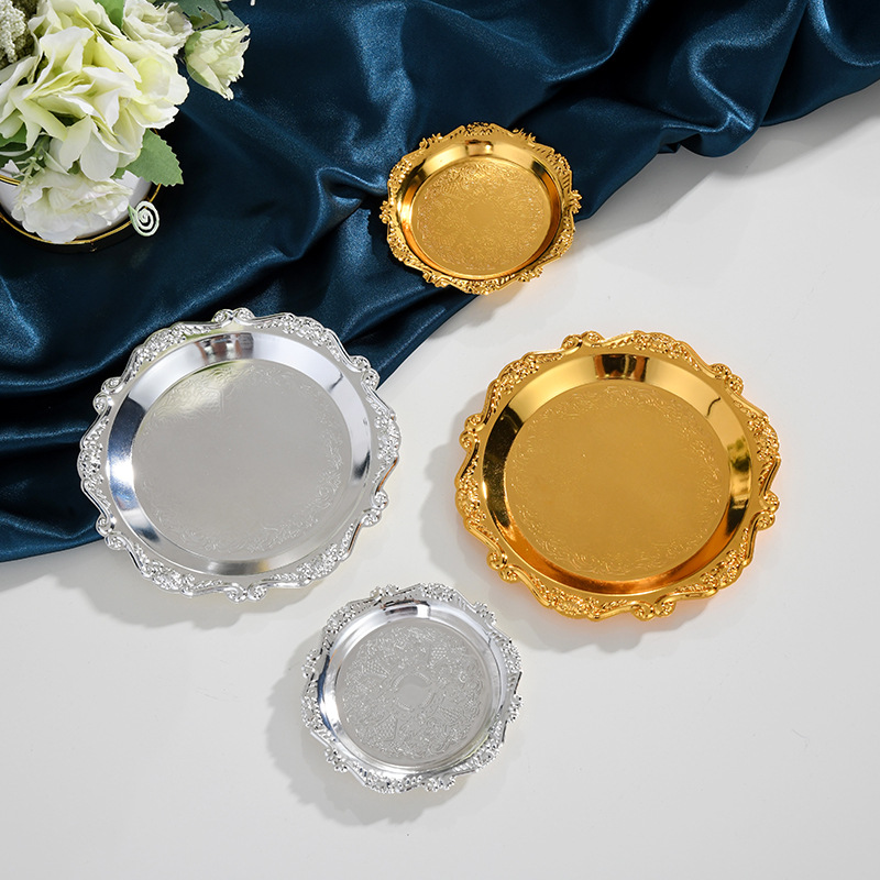 ケーキトレイ金属エンボス加工小さなトレイイン装飾プレートレトロティーカップホルダージュエリー収納トレイスナックケーキトレイ