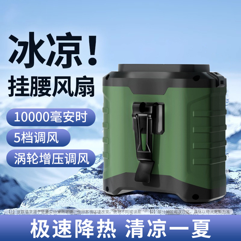 新しいクロスボーダー腰掛けファン、ポータブル小型エアコン、建設現場キャンプ、長持ちする屋外首掛けファン