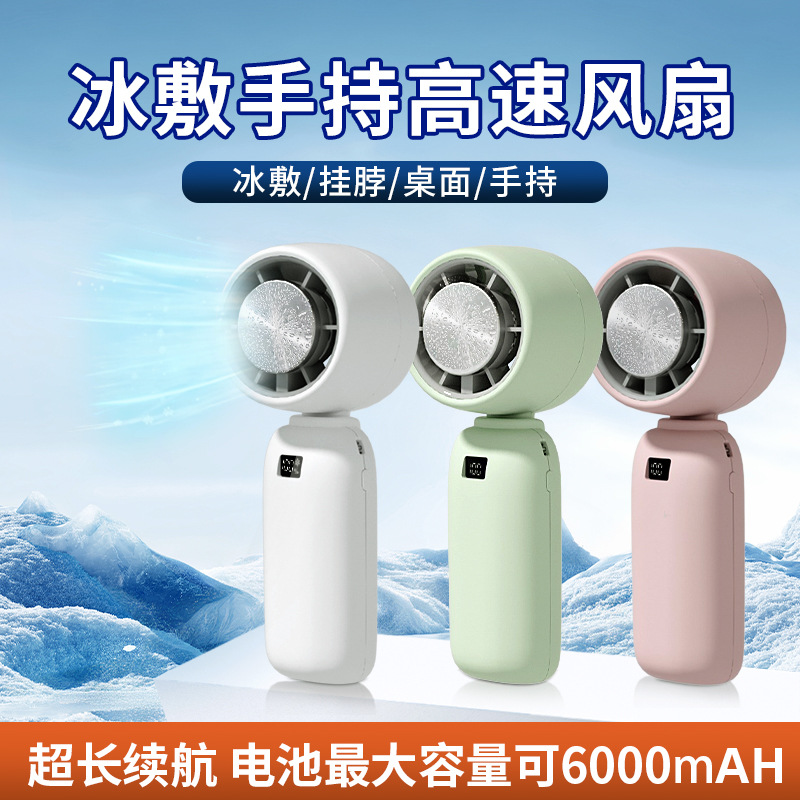 国境を越えた半導体冷凍式冷感高速ハンドヘルドファン、無段階速度調整、100段階風量、ポータブルで冷感
