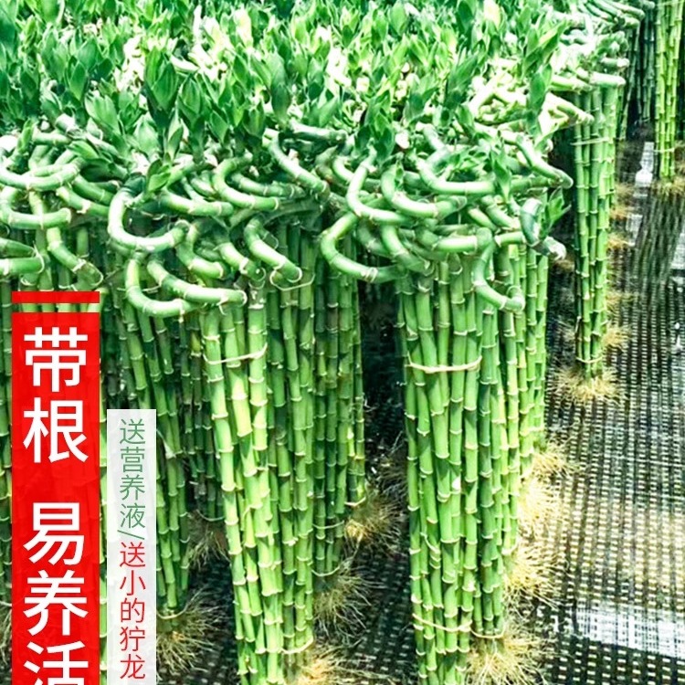 根付き輸送竹、水耕栽培の富竹、幸運の竹、水耕栽培のリビングルームの曲がった竹鉢植えの観葉植物
