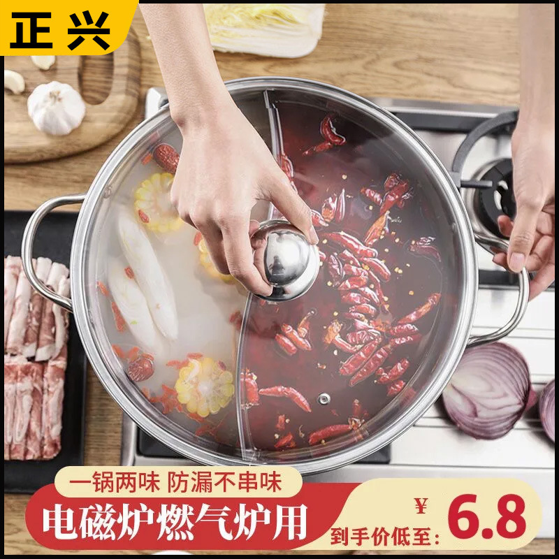 厚みのあるオシドリ鍋鍋蓋付きオシドリ鍋家庭用ステンレス鍋電磁調理器明鍋