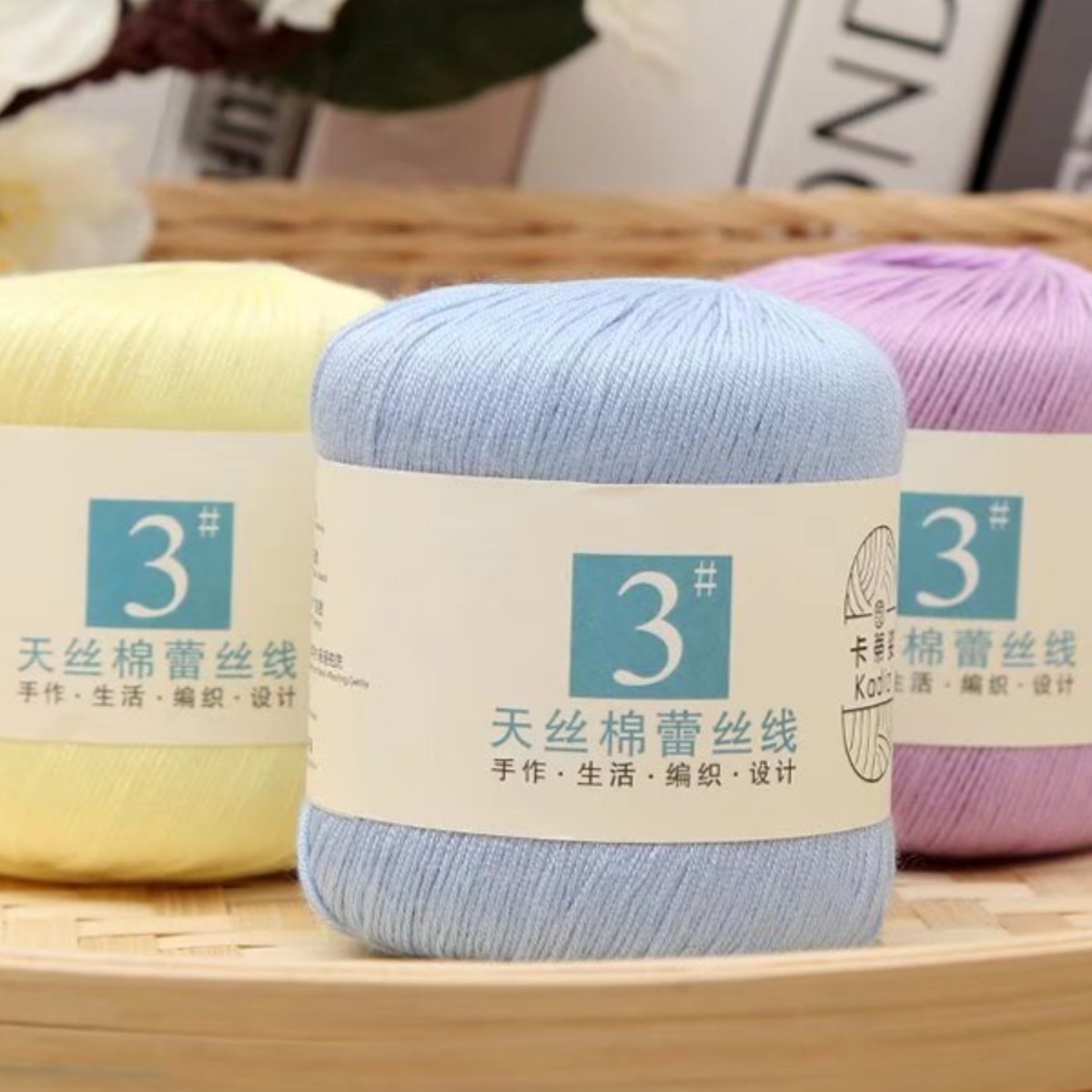No.3 パールレース糸 手編みシルケットファインウール かぎ針編み 手編みセーター 綿糸ボール