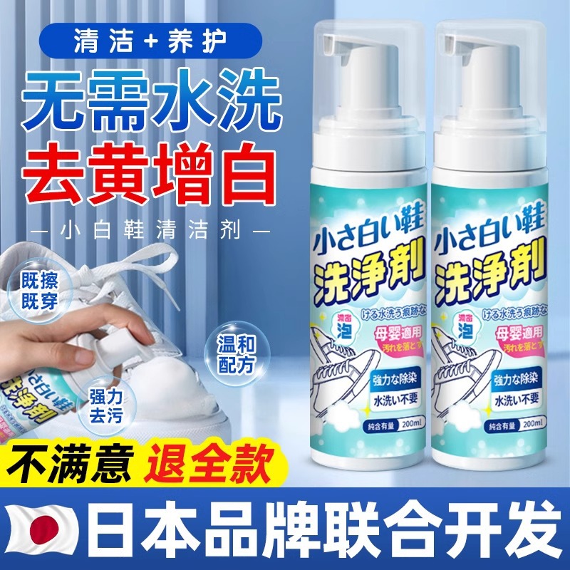 日本製の白い靴用洗浄剤、靴磨き、靴用クリーナー、除染、美白、黄ばみ除去泡
