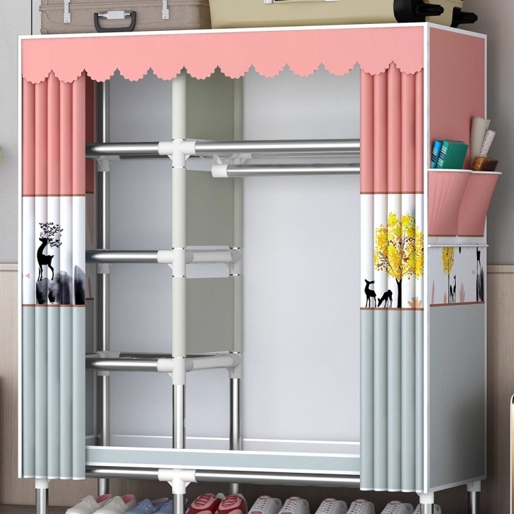 シンプルなワードローブ、自宅の寝室、頑丈で耐久性のある賃貸住宅組み立て布製ワードローブ、全鋼フレーム、厚みのある収納キャビネット