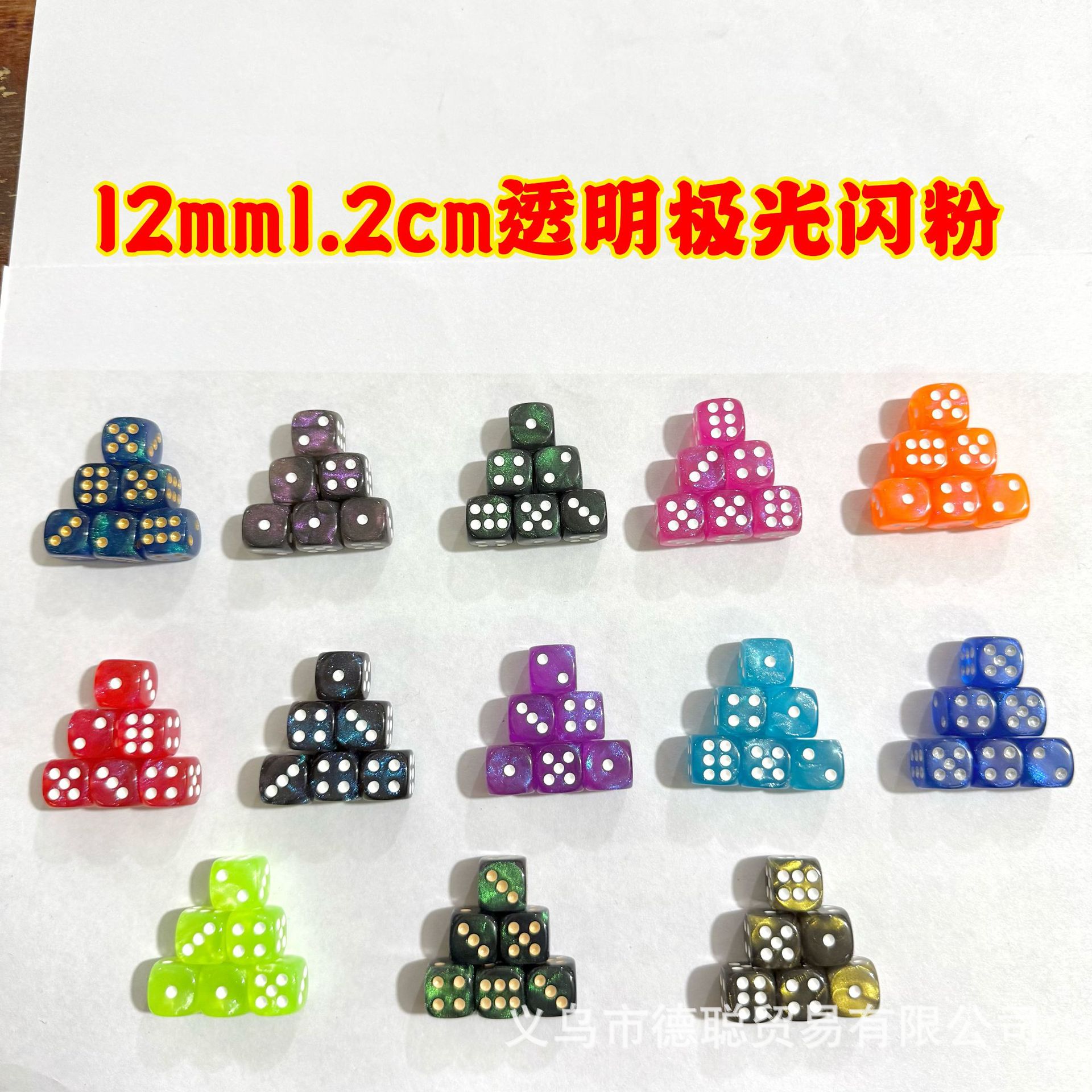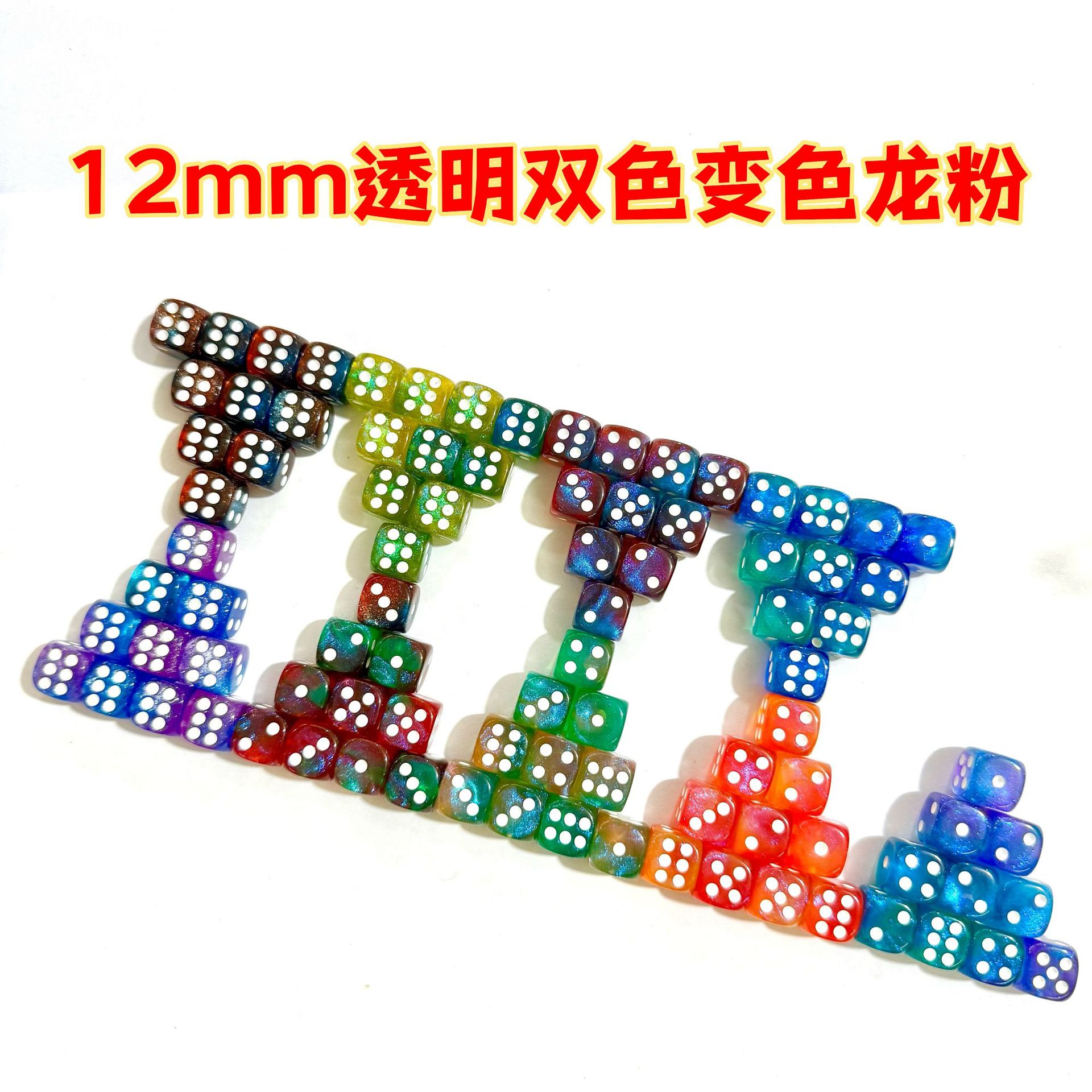 12mm透明ツートンカラーカメレオンパウダーサイコロ投子色子ふるい9種類