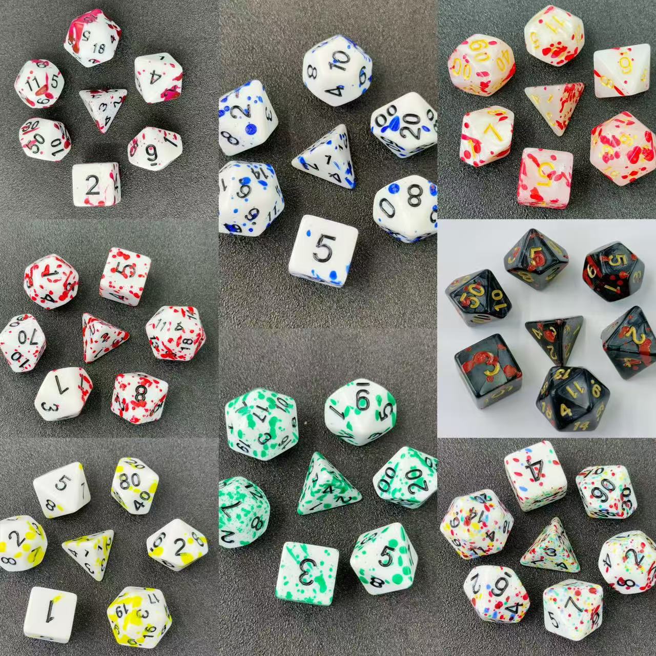 DND 多面体 7 サイコロセット ボードゲーム モノクロ スプレー塗装 ブルードット ブラッディセット サイコロ