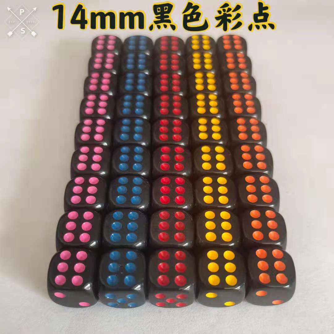 外国貿易の14mmの角の黒い色のペンキの7色のペンキの色の子のふるいのサイコロの投子