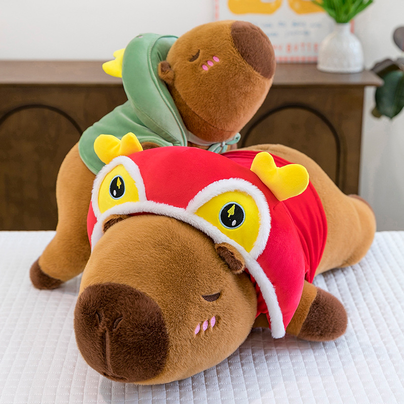 跨境趴款小鸡披风水豚毛绒玩具女生睡觉恐龙卡皮抱枕生日礼物批发