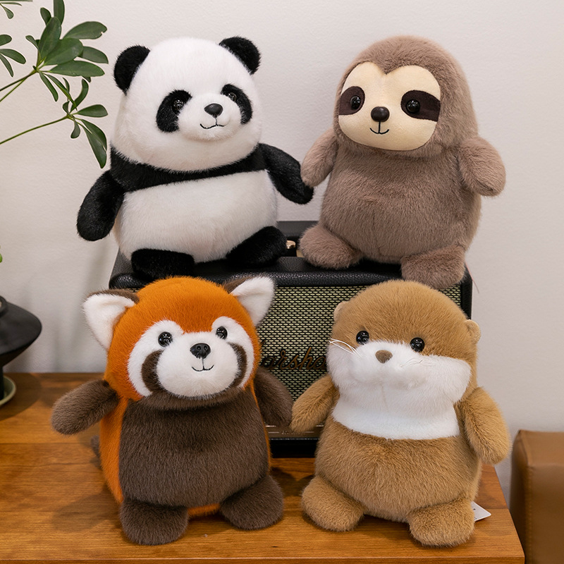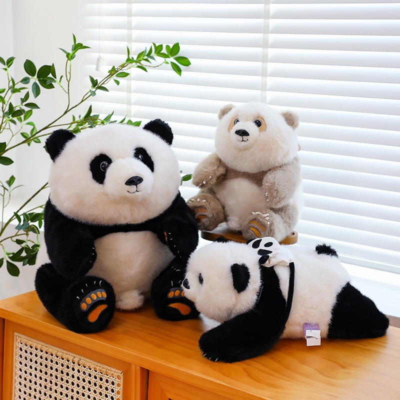 新型の大きいお腹のパンダのぬいぐるみの子供は寝てアライグマをなだめます。