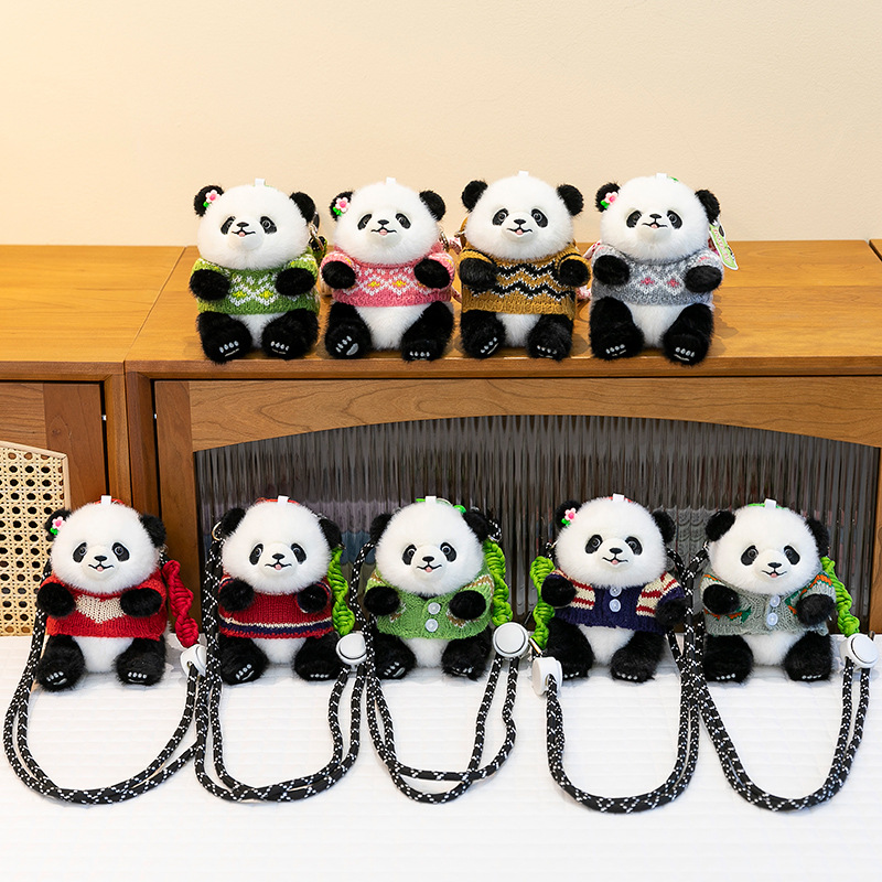 漫画のセーターのパンダの花のぬいぐるみの携帯電話は斜めのショルダーバッグの動物園の記念品のストラップを挟んで無邪気に卸売りします。