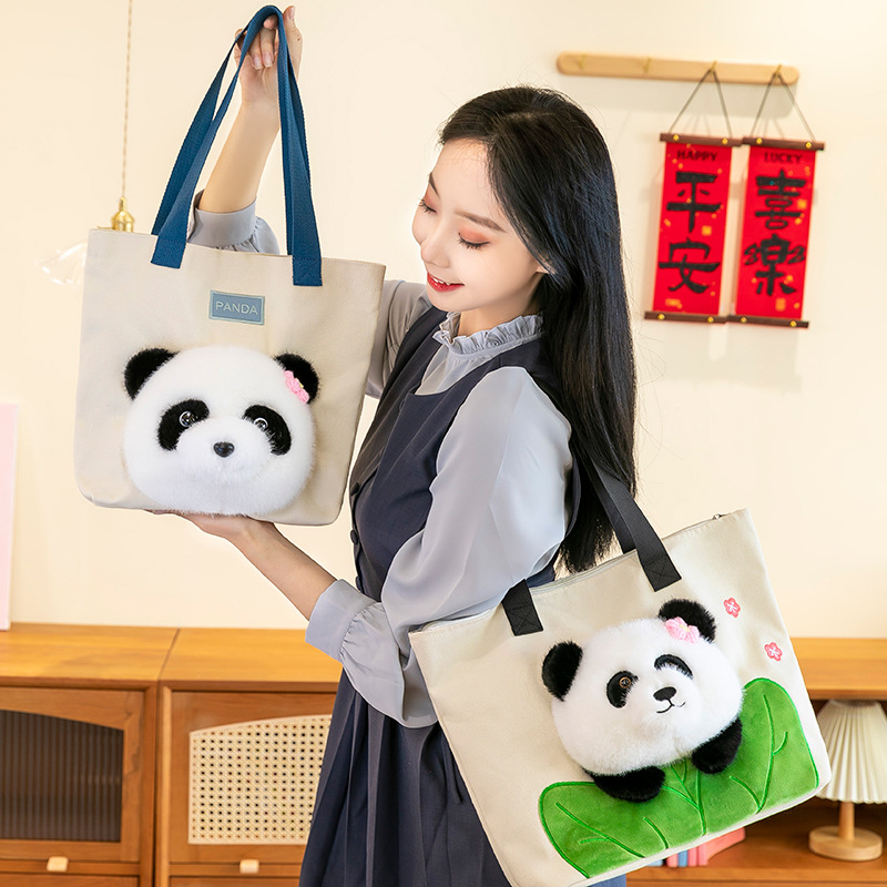 ファッションのハスの葉のパンダのキャンバスのカバンの熊の女子学生の斜めのショルダーバッグの学生のかばんの土地は贈り物を押して国境を越えて卸売りします。