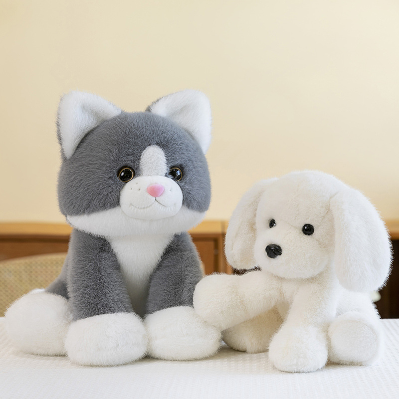 かわいいこんにちは、猫のぬいぐるみ子供がぬいぐるみのオフィスサルをなだめて子犬のプレゼント卸売りをします