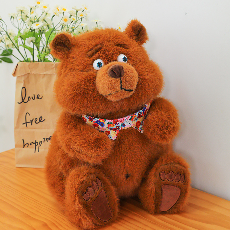 漫画シミュレーションヒグマぬいぐるみ子供なだめ人形機花マフラー熊家庭装飾品卸売り