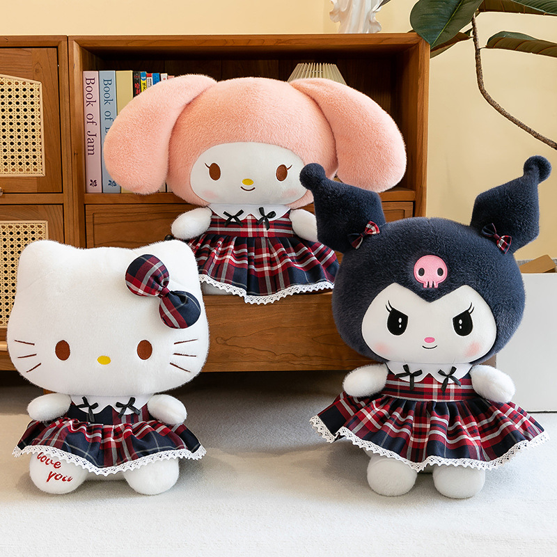 三好学生の猫のぬいぐるみの格子縞のスカートの倉庫の女の子の誕生日プレゼントの美楽は枕の家庭の装飾品を抱いています。