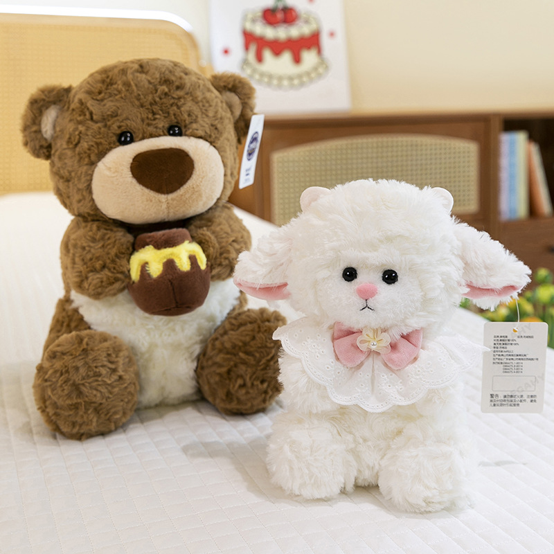 快適な熊のぬいぐるみの子供の誕生日プレゼントは子供機の子羊の子供を捕まえて結婚します。