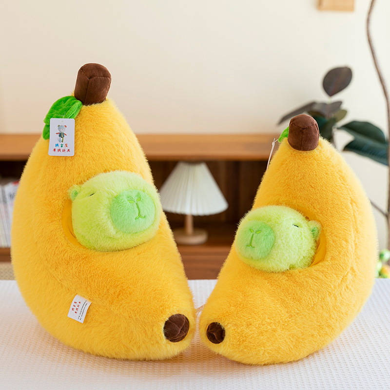 創意的なバナナのカピバラのぬいぐるみの子供は人形をなだめてオフィスを癒します。