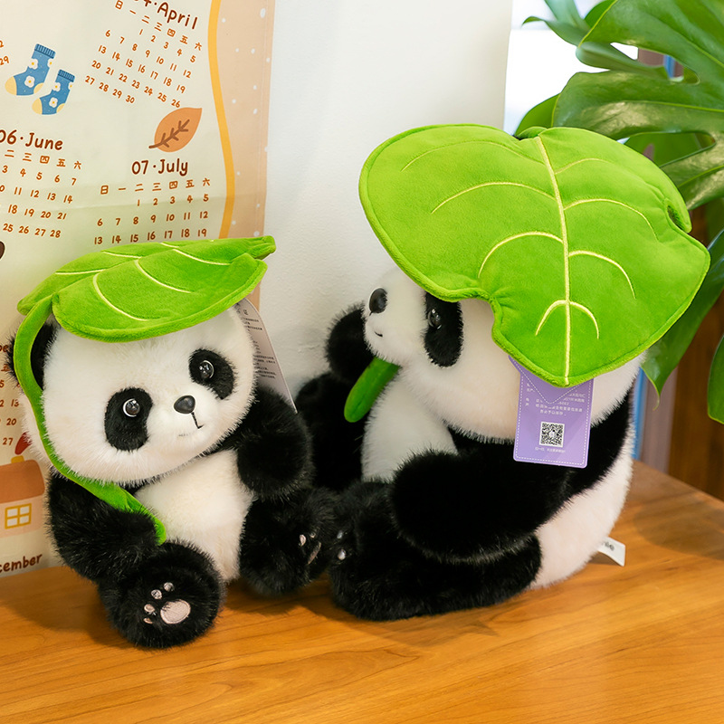 新款树叶熊猫毛绒玩具动物园活动纪念品儿童生日礼物地推玩偶批发